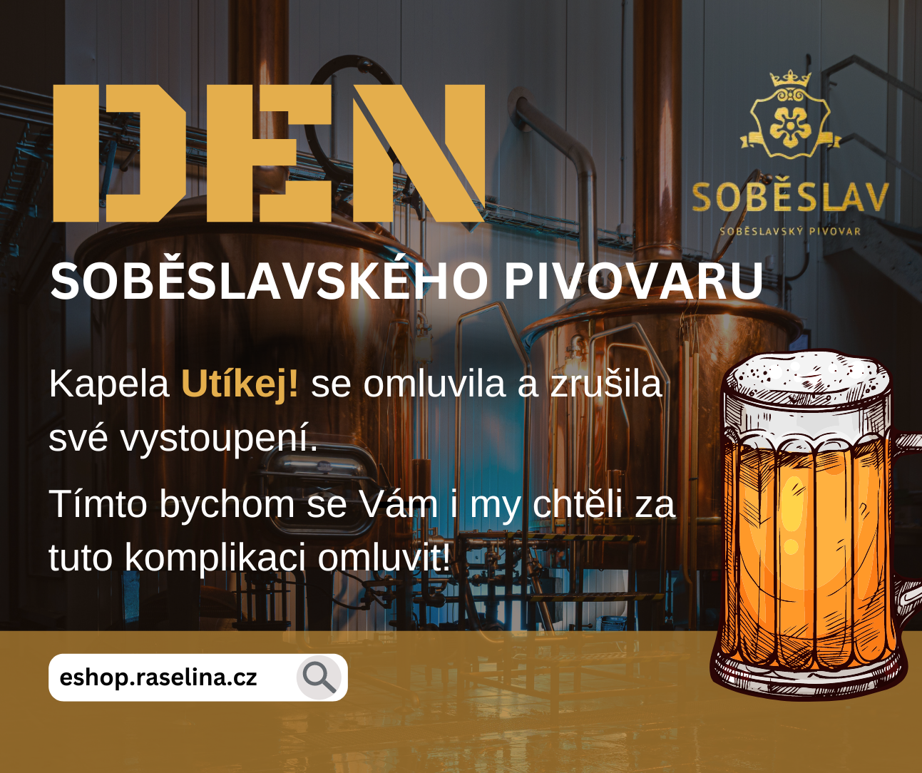 Kapela Utíkej! se omluvila a zrušila vystoupení na našem dni soběslavského pivovaru.