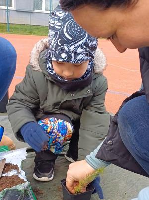 Děti si s námi mohli zasadit malý smrček, vysvětlili jsme jim jak se o stromeček starat a kam ho mohou s rodiči následně vysadit.